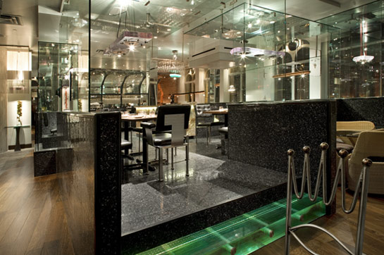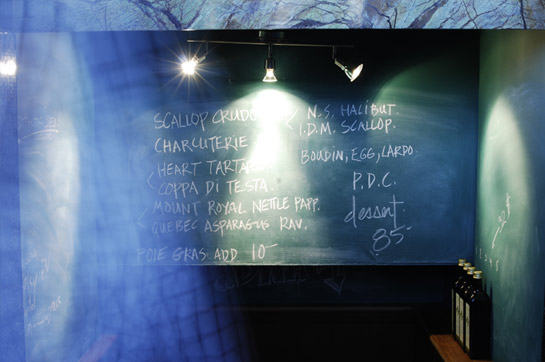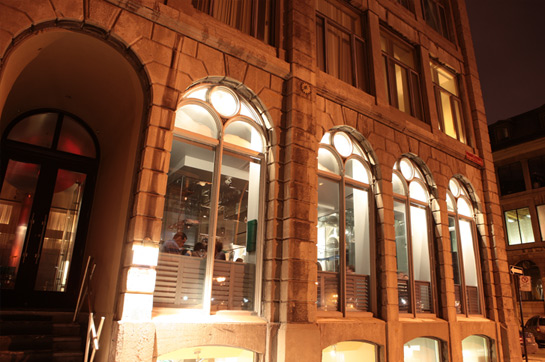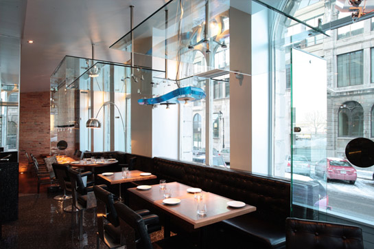 Au DNA, deux décors élégants et modernes évoquant Habitat 67 se font complices pour offrir une ambiance qui invite à célébrer la vie autour d’un verre ou d’une table.